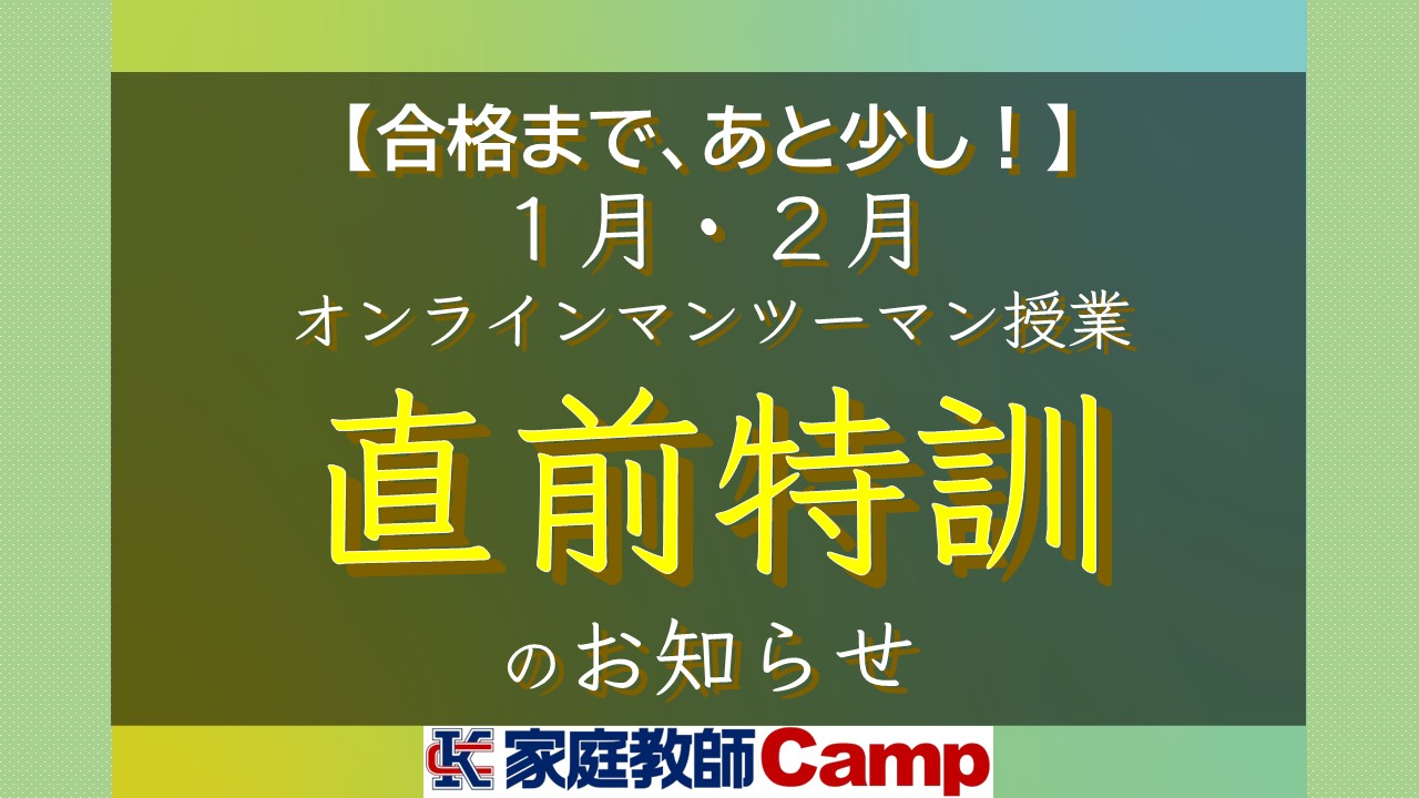 【合格まで、あと少し!】 オンラインマンツーマン授業 直前特訓 のお知らせ